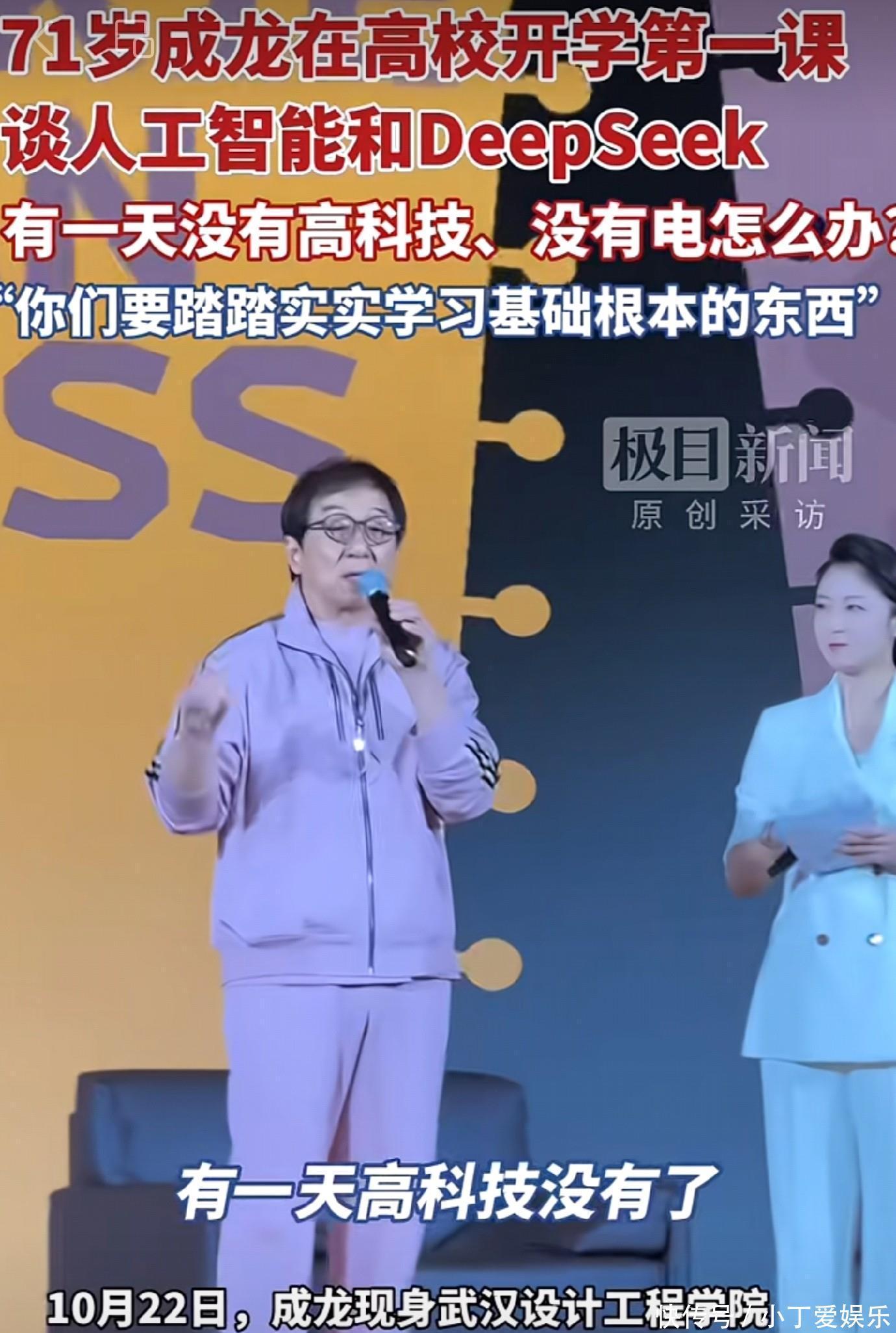 “我最怕两件事,一是打针,二是讲课,因为在座各位学问都比我好。” 成龙以幽默开场,随后坦诚人生憾事:“我只上到小学,没好好读书是一辈子最后悔的事。”入行 64 年的他,回顾 16 岁做小武行的起点:“一天挣五块钱时,就立志要当武术指导。” 他从细节学起,在片场不碍灯光师、不挡导演视线,靠搬运镜头、抬灯时 “偷师”,两年后就凭《四王一后》实现武术指导梦,最终成为双料终身成就奖得主。叮嘱 “多才多艺 + 打基础”官宣艺术馆新动态“各行各业都要多才多艺,至少要懂,才没人能骗到你。”71 岁的成龙仍坚持学跳伞、潜水等技能,他点赞新时代便利:“过去直升机镜头花 40 万,现在无人机就能拍”,同时提醒学子:“基础是根本,没了高科技也要能立足。