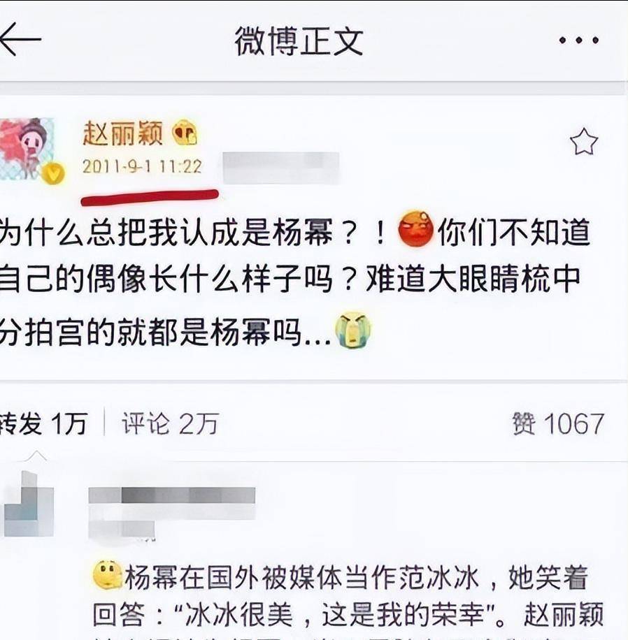 直接在社交媒体上开麦,吐槽“为什么总把她认成杨幂,”。